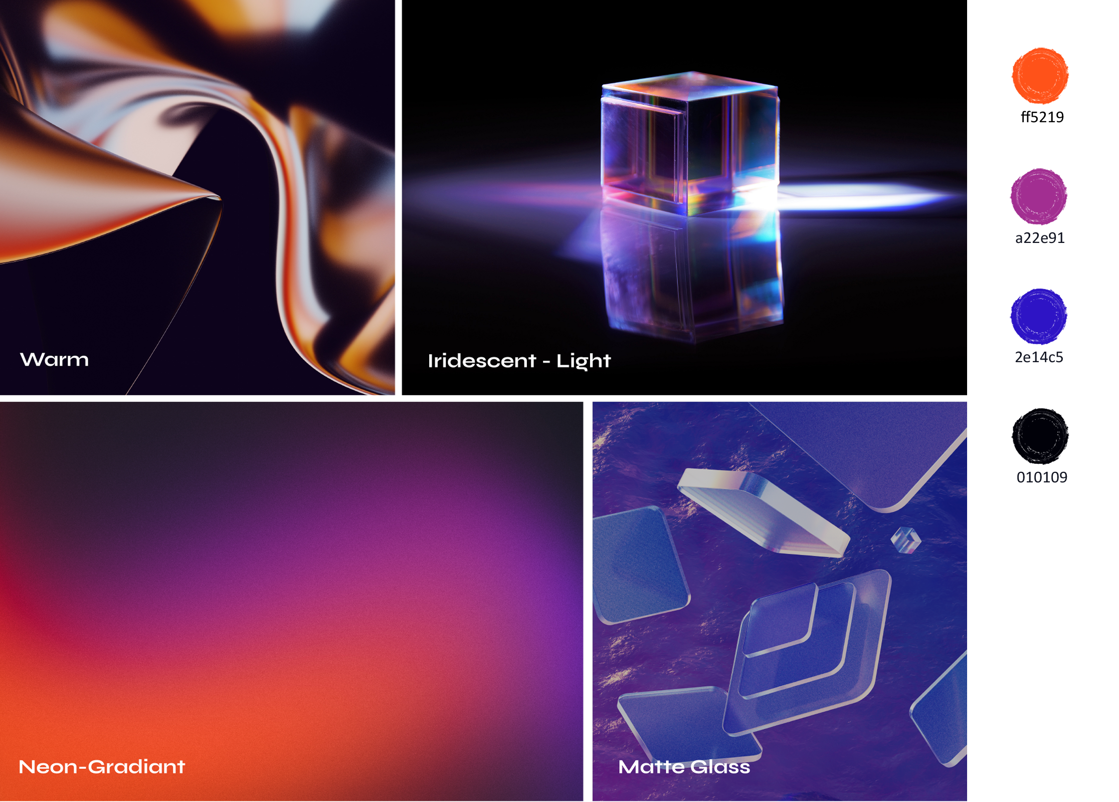 The warm red-orange color beside the iridescent light effect and glassy touch conveys a hyper-energetic vibe.
